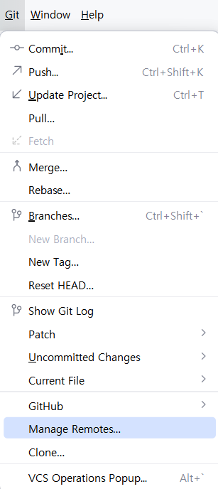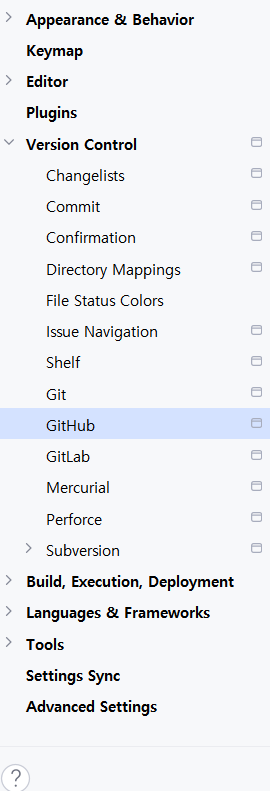 [File]에서 [Settings]을 누르고 [GitHub]을 선택하면 GitHub와 연동되어 있는것을 확인할 수 있다.