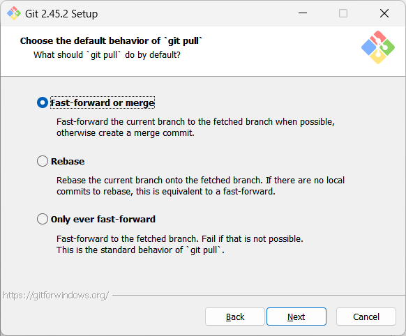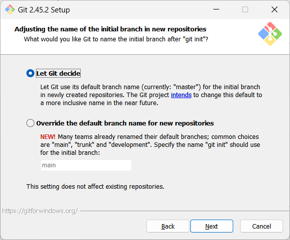 [Let Git decide]는 기본 분기 이름을 사용한다.