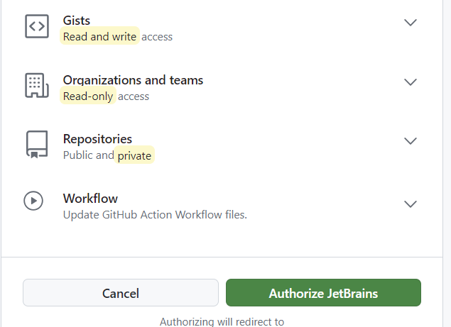 로그인 후에 [Authorize JetBrains]을 클릭한다.