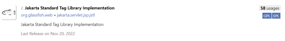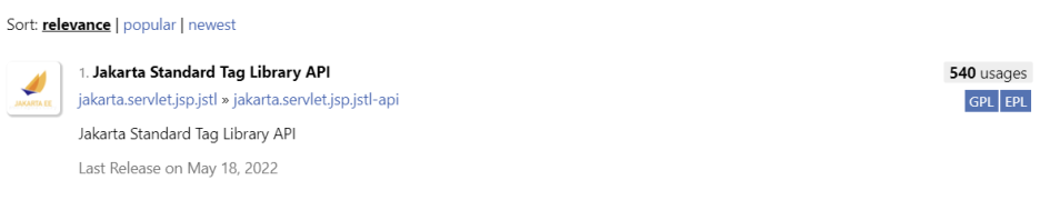 들어간뒤 검색에 jakarta.servlet.jsp.jstl를 친후 첫번째에서 [jakarta.servlet.jsp.jstl-api]링크를 클릭한다.