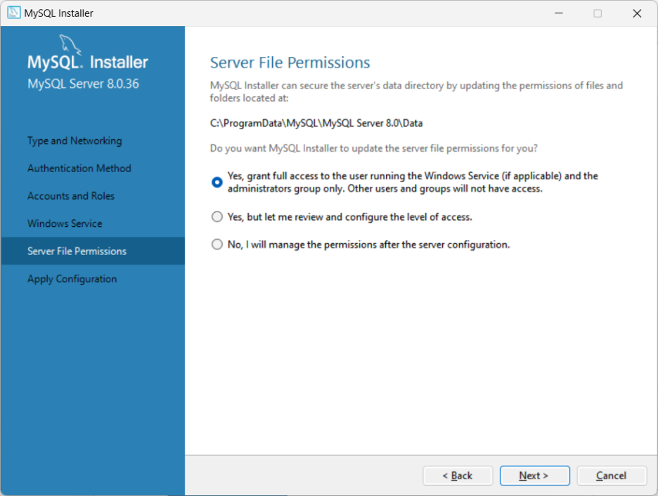 [Password]에 위에서 Root 계정으로 만들었던 패스워드를 채워넣는다. 그리고 밑에 [Check]버튼을 누르고, 일치하는지 확인되면 [Next]버튼을 누른다.