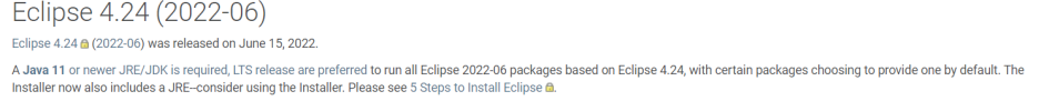 만약 본인이 Eclipse 4.24(2022-06)버전을 사용한다면 JDK 11에서도 작동하지만