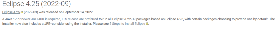 Eclipse 4.25(2022-09) 버전을 사용한다면 JDK 17 이상에서만 동작한다.