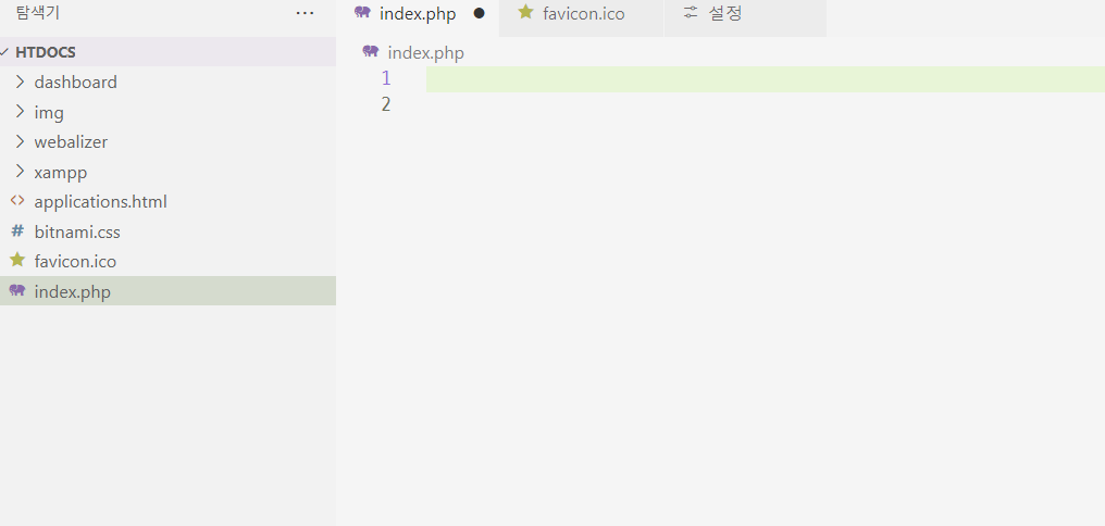 [Visual Studio Code]에서 [파일] [폴더 열기]를 누른다음 [xampp][htdocs]를 선택한다.